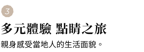 為維持每位旅客體驗感受,璽品旅遊採取10-25人的精緻小團模式,不僅實際帶旅客入內參觀世界遺產或當地知名景點,在交通工具安排上也能更活用火車、遊船、纜車等多元交通工具,並且行程中也特別安排當地特色文化體驗,從日常生活的服飾變裝,到當地慶典共享同樂,方方面面都將點亮旅程、讓您深刻感受當地人的生活面貌。