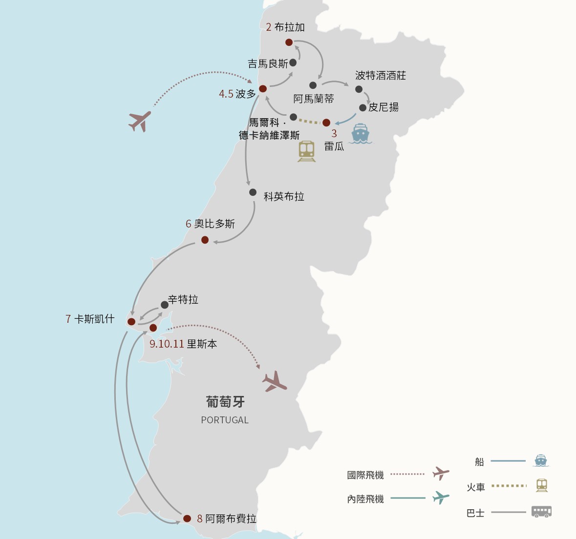 河谷火車行駛,窗外山谷與葡萄園相映成趣。抵達波多,造訪證券交易宮,沉醉於商貿與宏偉建築的交會。體驗國寶級工藝葡萄牙花磚繪製,把一片專屬與你的葡萄牙風景裝進行囊。