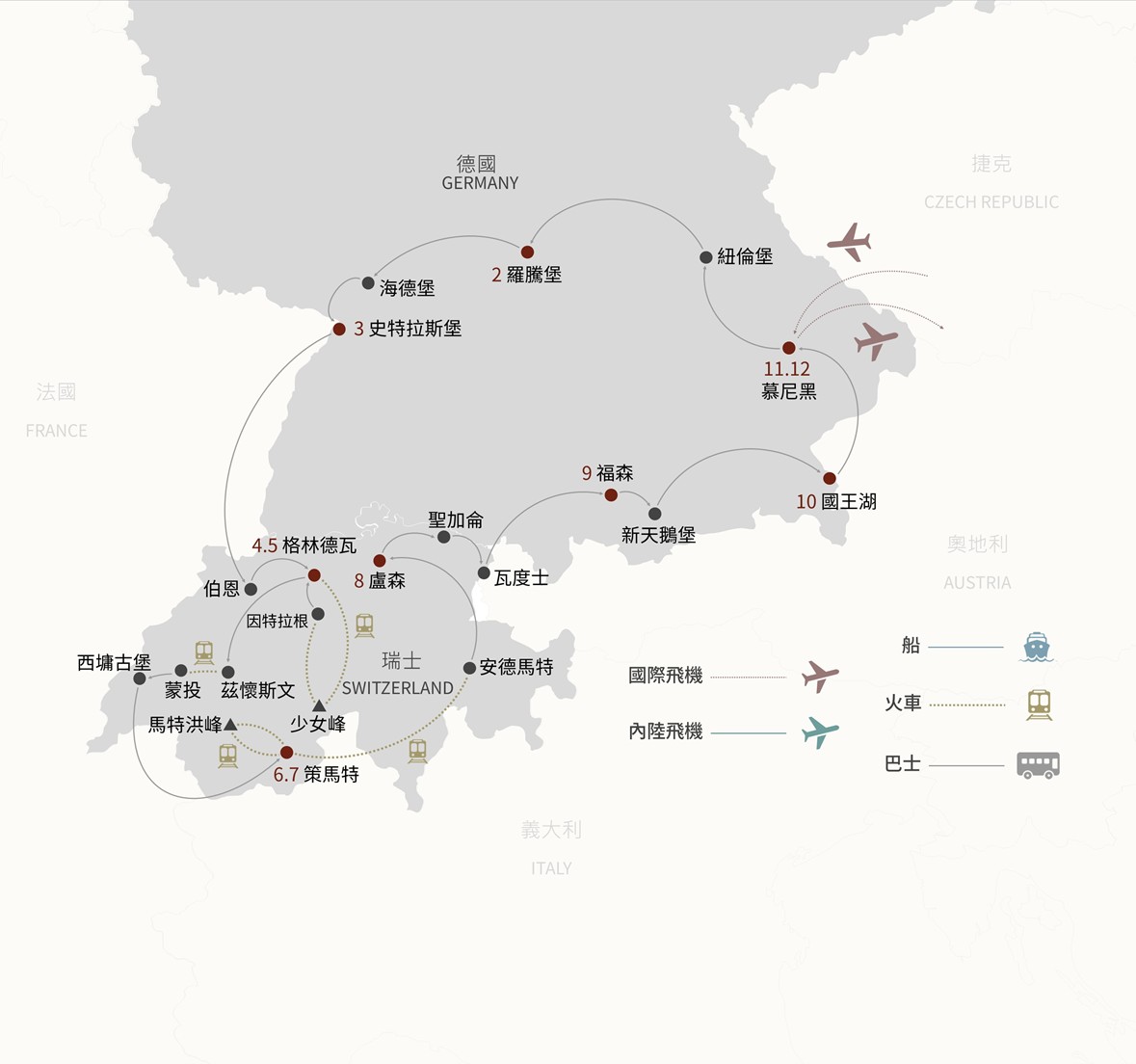 盧森Lucerne-聖加侖St. Gallen-瓦度士Vaduz-福森Fussen