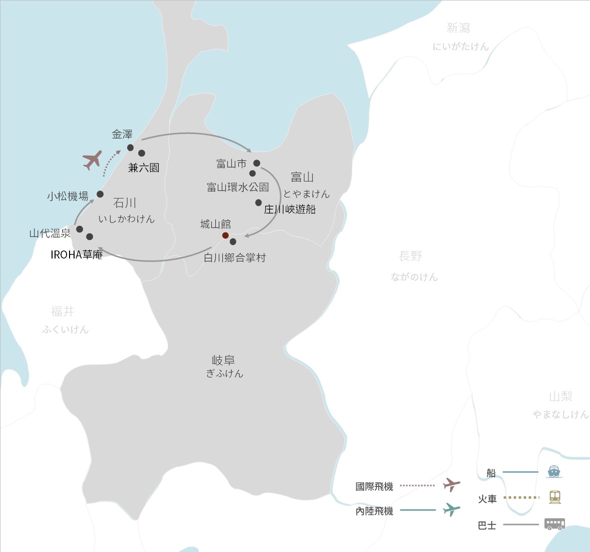 金澤21世紀美術館→高岡山瑞龍寺→富山縣美術館(屋上庭園12/1~3/15不開放)→富山環水公園→星巴克富岩運河環水公園店