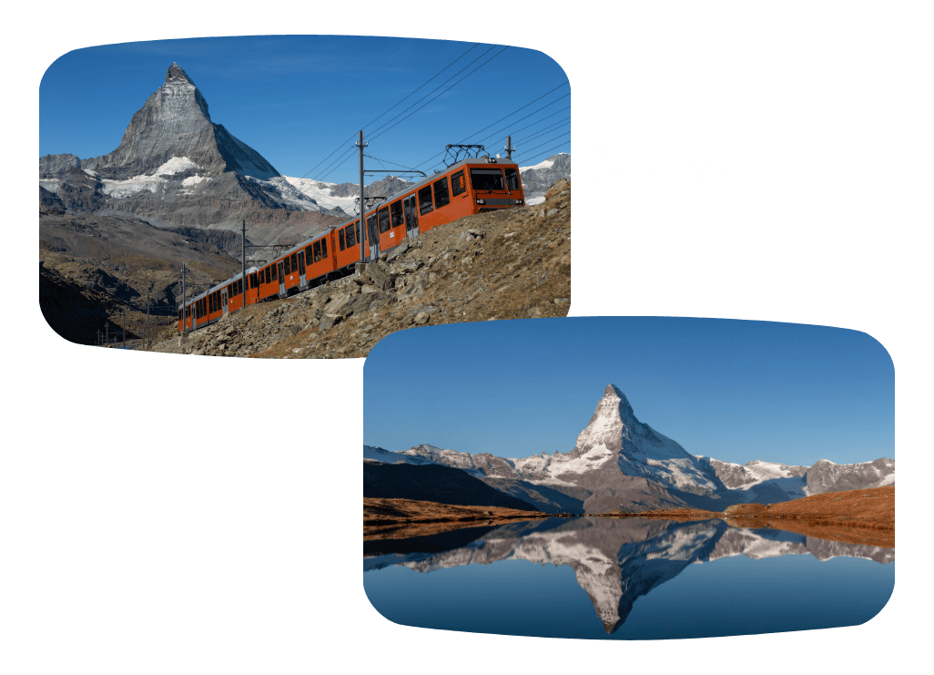 馬特洪峰如詩般矗立天際,雪白山巒倒映在湖水間,是瑞士最動人的象徵,獨特三角錐的外形儼然成為瑞士的象徵符號。靜靜凝望,彷彿世界都為之沉靜,只留下心靈與壯麗對話的片刻。