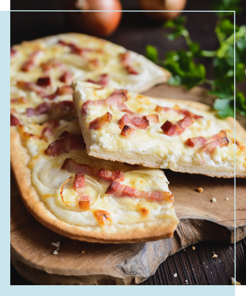 非常像是義大利的國粹”披薩”,但是比披薩更早出現,厚度上來說也更薄,上頭放著洋蔥、培根;法式酸奶與起司,外表焦脆鹹香,配上葡萄酒或者啤酒就是最好的開胃菜選擇。