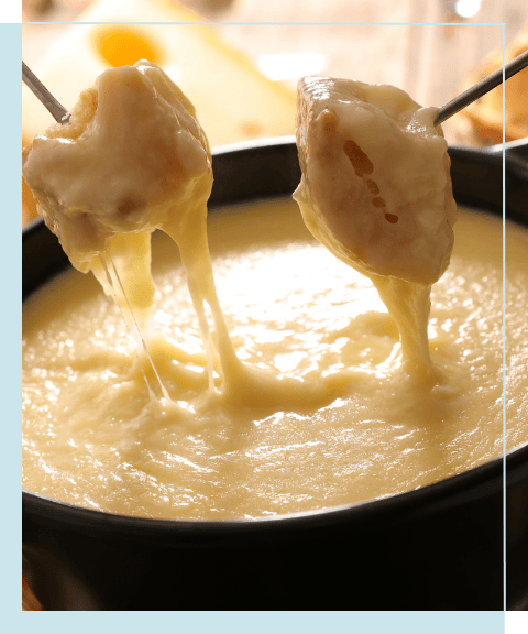 加熱白葡萄酒放入起司所化成的原汁,依著不同的口味,放入不同的配料。初入口時味道會些微苦澀,但隨即濃厚的奶香陣陣從口腔裡傳來,每種口味都有不同的味蕾感受。