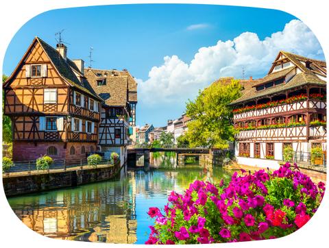 地處德國與法國的邊界,小鎮上五彩繽紛的房子與中世紀木桁架房屋,宛如走入童話故事裡面。