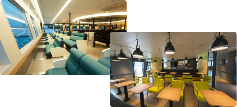 船內也有販售當地名產與飲品的小商店能邊品嚐邊觀景