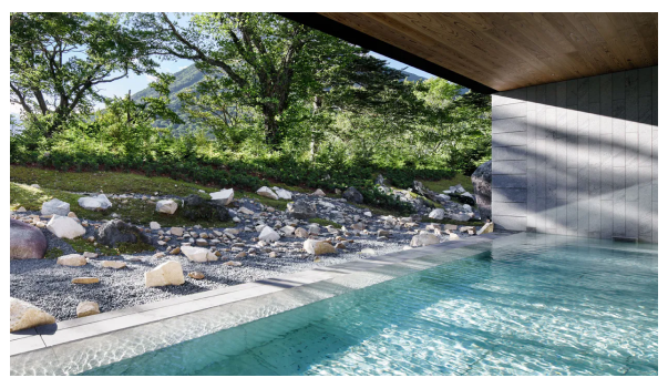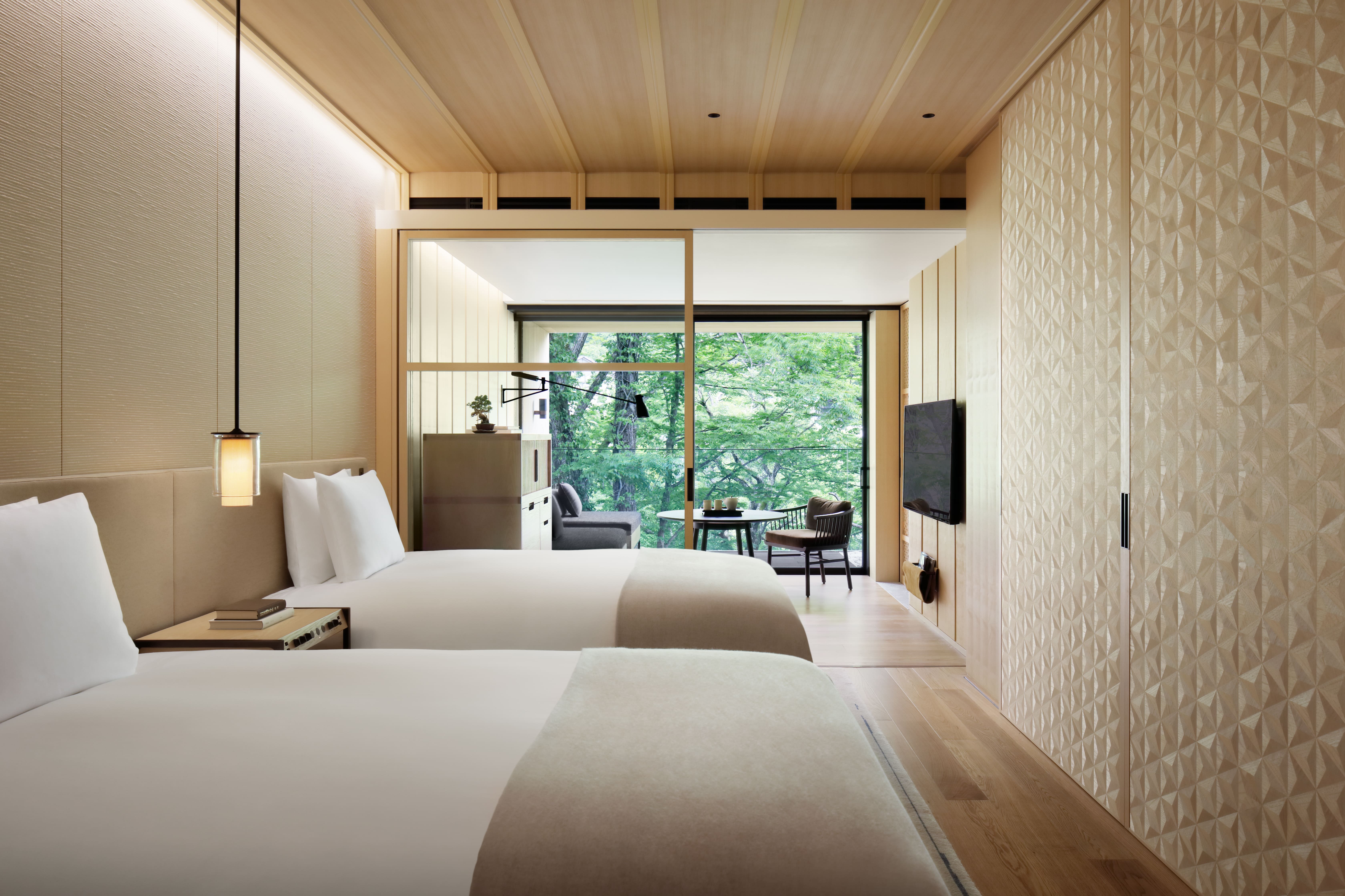 品牌於全球第一間溫泉酒店,於2020年7月開幕,每間客房皆設有陽台,坐下來欣賞窗外的綠,不禁讓人感到內心平和,抑或是浸泡在溫泉中,享受森林的靜瑟,洗滌日常的塵囂。