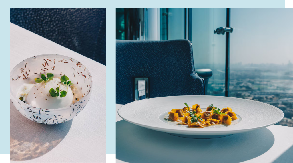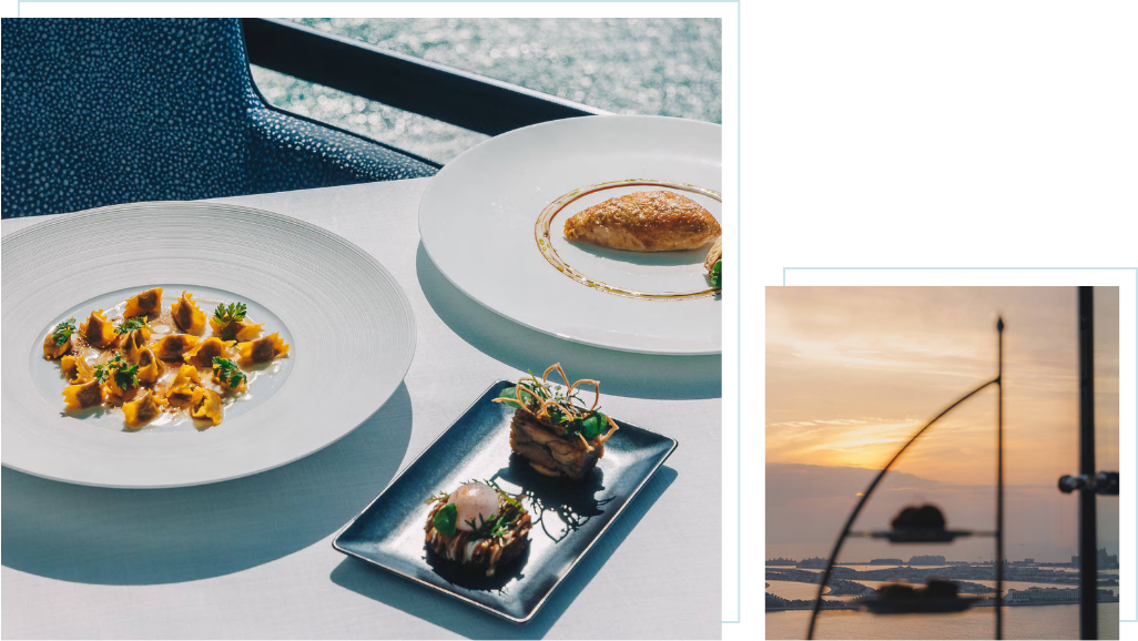 位於杜拜高空的 Al Muntaha 餐廳,名字意為「頂點」,象徵著美食與景觀的極致體驗。懸於200米高空,猶如漂浮在雲端,透過落地玻璃窗,將阿拉伯灣碧波、棕櫚島的輪廓與杜拜天際線盡收眼底。晨光灑落,海面泛起金色波光;夕陽西下,天空與城市燈火交融,餐桌上的每一刻,都如同置身一幅流動的畫卷。餐廳米其林一星料理聞名,每一道菜都像藝術品般細膩,色彩、香氣與口感交織,帶來味覺的驚喜與享受。坐在高空之上,品味極樂饗宴,仿佛與海天融為一體。當海風輕拂、雲影漂浮,舌尖品味星級饌餚,眼前欣賞無垠景致,時間彷彿放慢,每一刻都在書寫杜拜的奢華篇章。提供您不僅是一場饗宴,更是一段雲端之旅,一段記憶深刻、如詩如畫的頂級體驗,讓旅人回味無窮。