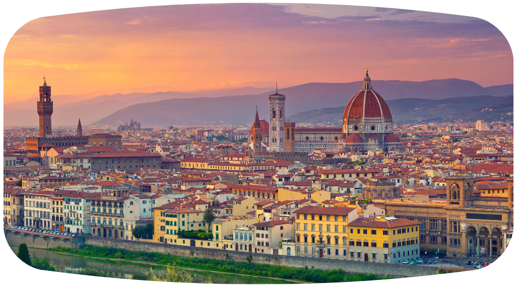 佛羅倫斯位於義大利托斯卡尼大區,被譽為「文藝復興的搖籃」。這座城市以其深厚的藝術與文化底蘊聞名,孕育了米開朗基羅、達文西等大師。市中心的聖母百花大教堂以壯麗的圓頂成為地標,烏菲茲美術館則收藏世界級名作。佛羅倫斯也是歷史上強大的美第奇家族的根據地,對歐洲政治與藝術影響深遠。如今,漫步於舊橋與中世紀街道間,仍能感受到濃厚的人文氛圍。