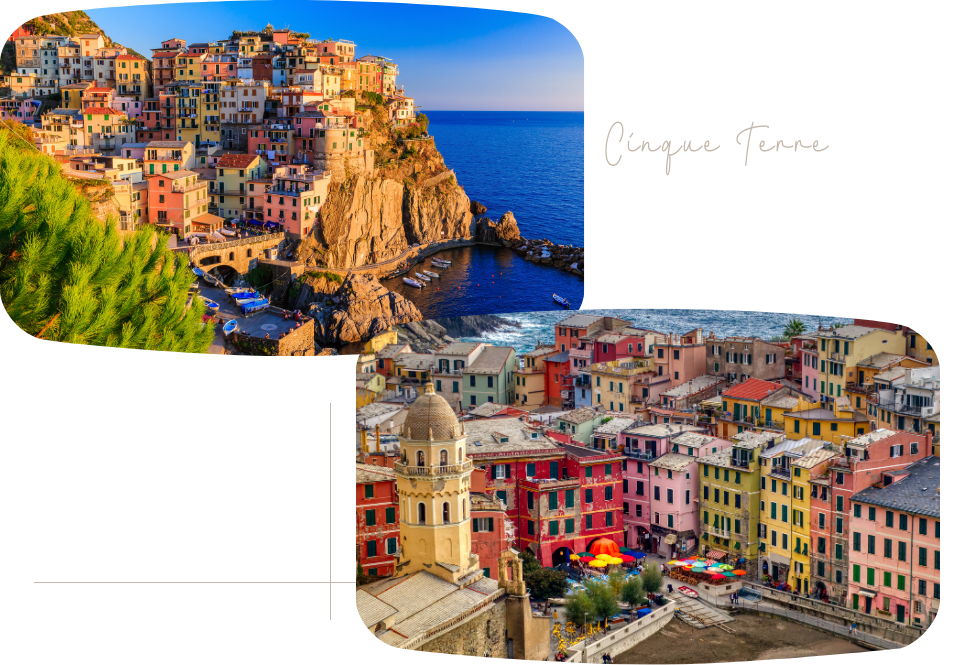 五漁村(Cinque Terre)位於義大利利古里亞大區,是由蒙特羅索、韋爾納扎、科爾尼利亞、馬納羅拉及里奧馬焦雷,五個色彩繽紛的漁村組成的海岸線景觀區。這些村落依山而建,房屋錯落於峭壁之上,面向地中海,景色迷人。也保留了傳統的漁村生活與農業文化,特別以梯田種植葡萄與橄欖聞名。村內道路狹窄,適合步行探索,並有著名的沿海步道「愛之路」連接各村。這裡的海鮮料理、新鮮葡萄酒以及古老教堂和燈塔,讓遊客感受到濃厚的地方風情。五漁村因其自然景觀和文化價值被列入世界文化遺產,是義大利最具魅力的旅遊勝地之一。