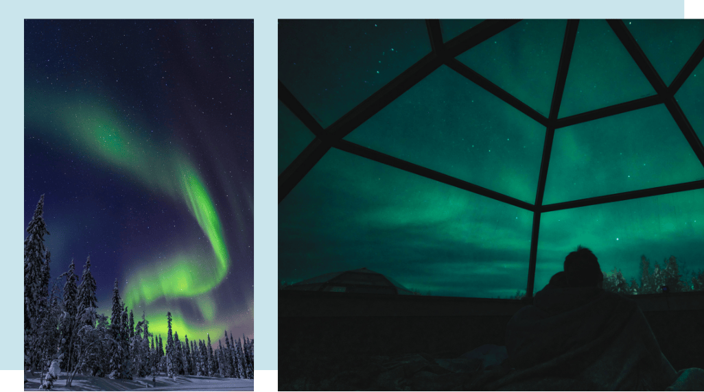 當透明的玻璃穹頂成為夜的窗,旅人不必冒寒風,也能靜候極光的到來。無論是冰屋、木屋,或北境著名的玻璃屋,每一次抬頭,都是與星空零距離的親密相遇。在舒適的寢境中,喧囂之外,與星辰極光對話。