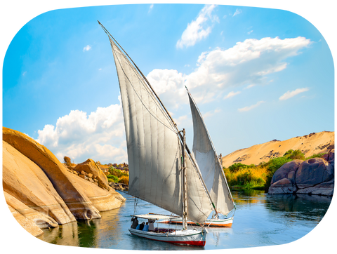 尼羅河傳統帆船,起源古埃及,船身木製,配大帆。它曾用於運輸貨物和貿易。乘坐風帆船,可感受古老航行方式與河岸獨特風情。