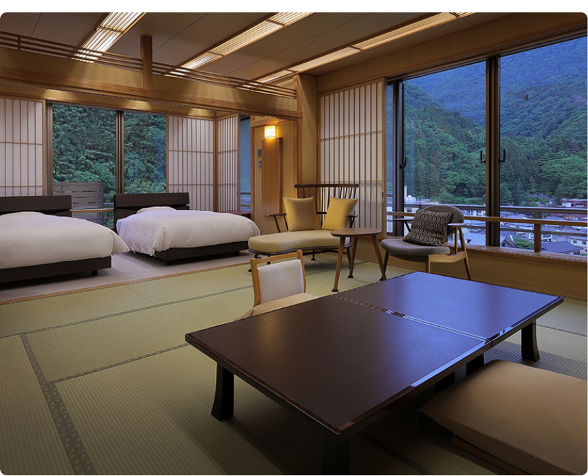 連續40年入選「日本溫泉旅館百選」,以傳統日式待客之道、細膩入微的服務及寬敞舒適的溫泉設施而聞名。