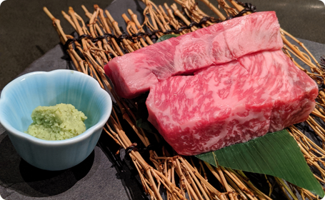 米澤牛是山形縣嚴寒氣候與清澈水源孕育出的藝術品。細緻如雪的霜降大理石紋路,在炭火溫度的催化下,低融點油脂瞬間化為馥郁誘人的脂香。