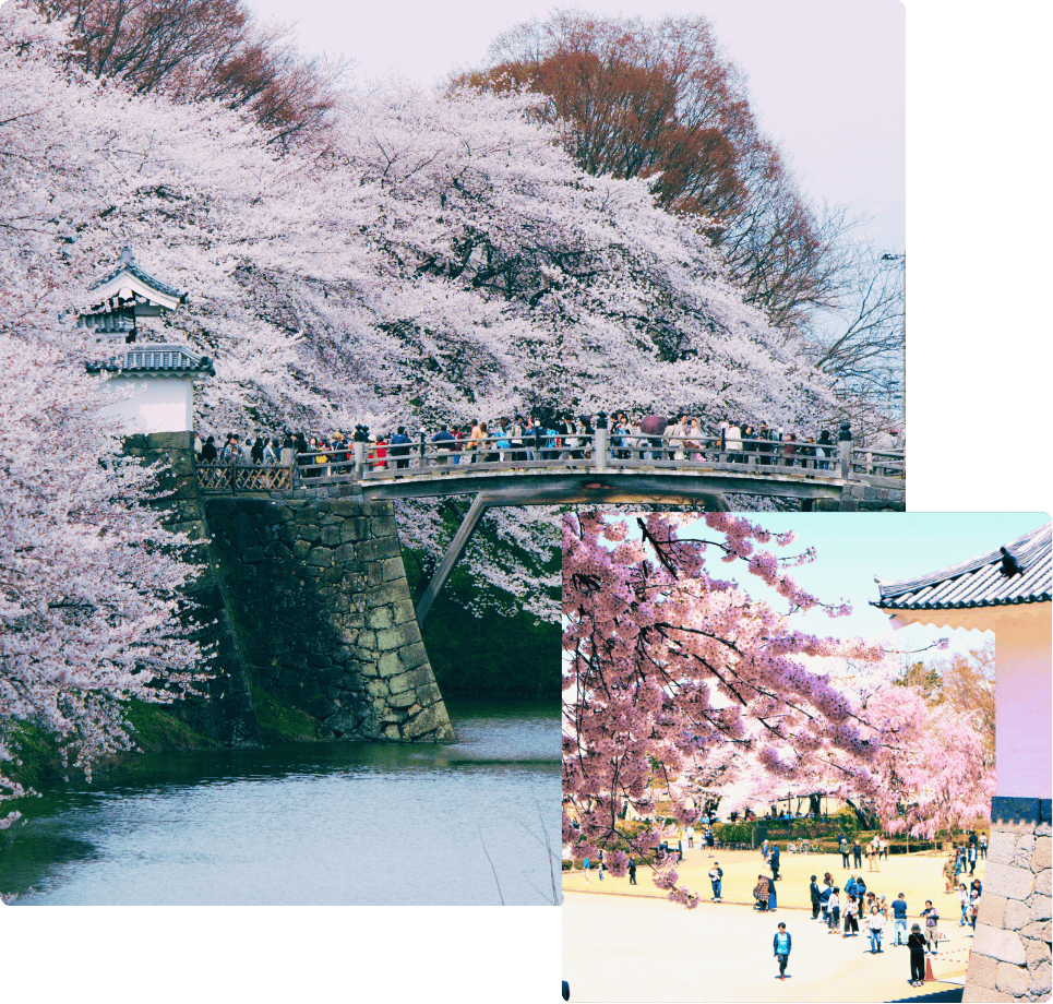 在櫻花季節,護城河畔的花海與古老的城牆相互輝映,形成一幅如夢似幻的美景。這裡不僅是市民們賞櫻的最佳去處,更是日本東北地區的著名賞櫻勝地。