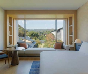 建築融合京都傳統與現代極簡美學,飽覽大堰川絕景,同時欣賞橫跨江戶至現代的藝術巨作,體驗優雅的靜謐時光。
