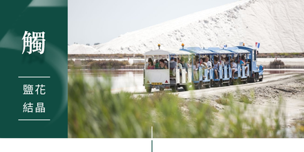 搭乘復古小火車穿越卡馬格國家公園,粉紅湖面在陽光下泛著礦晶般的光澤,形成南法最夢幻的鹽田景致。湖泊色彩源於高鹽度水域中「杜氏鹽藻」的自然反應,而這片土地也孕育出被譽為鹽界珍品的 Fleur de Sel 【鹽之花】。穿越古城牆外的廣闊鹽田,能近距離觀察結晶堆疊的層理與工藝採收方式。這趟緩慢的車程走進一幅自然與人文交織的畫,帶走鹽之花,在日常中反覆品味粉色湖畔的記憶。