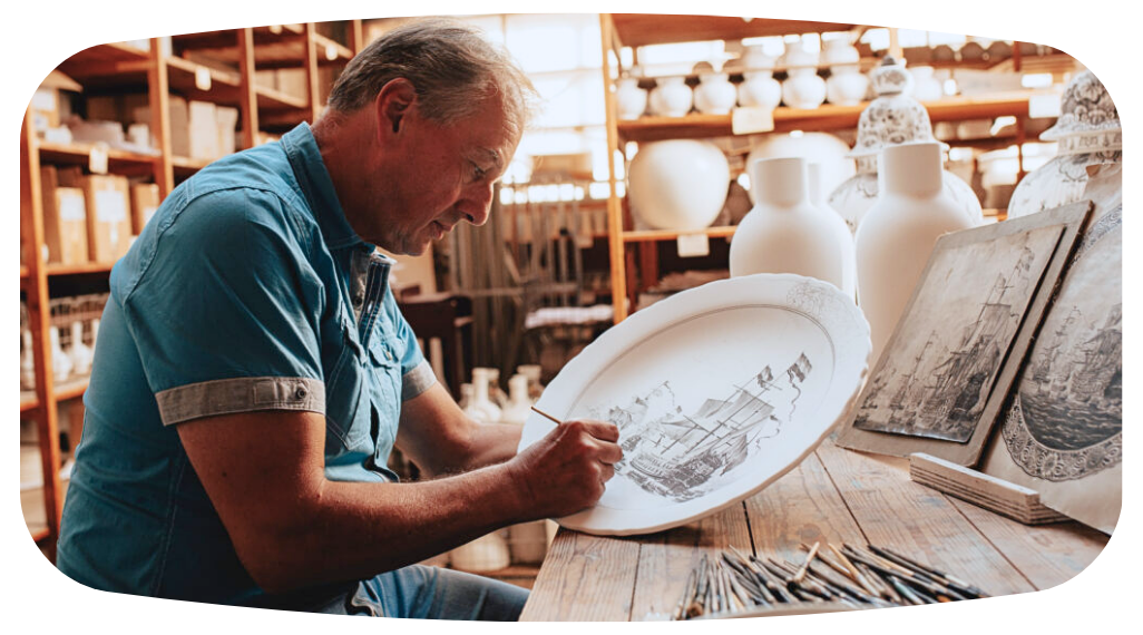 在百年藍瓷的歷史底蘊中,享受一場別具格調的午茶時光。精緻瓷器盛裝香茗與糕點,將藝術工藝融入餐桌日常。藍白瓷的優雅與餐桌細節相映成趣,在寧靜氛圍裡啜飲香茗,感受傳統手作的質感與細膩,旅程結尾的午後共享一頓午茶,體驗荷蘭皇室生活中的儀式感。