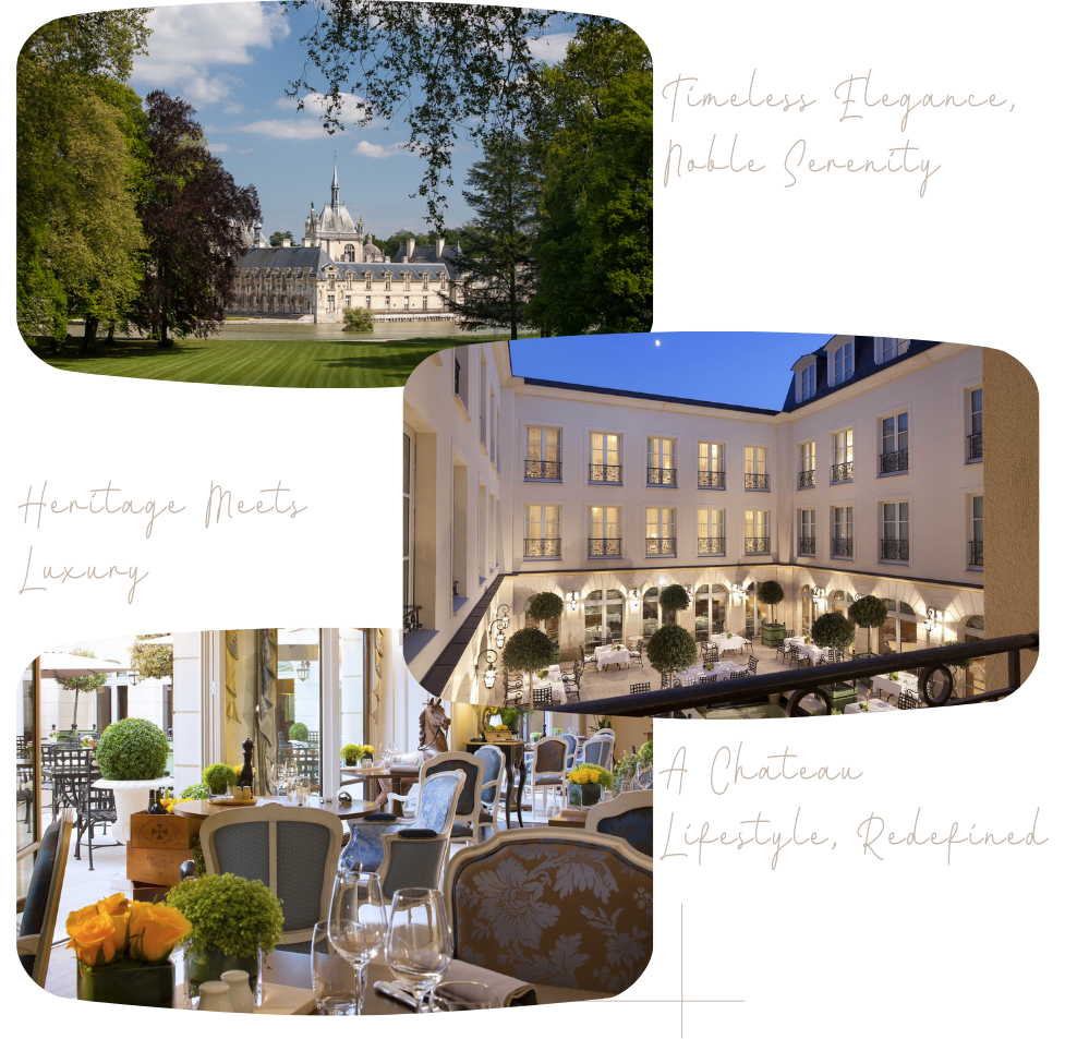坐落於香堤邑城堡與大馬術博物館之間,Auberge du Jeu de Paume 彷彿是將貴族莊園生活凝縮於現代旅人腳下。典雅的古典裝潢搭配精緻細膩的服務,讓人彷彿穿越至法國宮廷的華麗年代。客房內飾以古董家具與細緻織品,窗外即是城堡花園與馬場景致。米其林星級餐廳為饗客獻上法式美饌,水療中心則提供靜謐放鬆的片刻。這裡不僅是一間酒店,更是一段專屬於香堤邑的貴族式體驗。